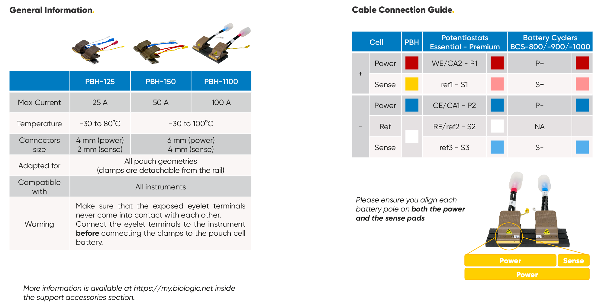 - The PBH-125, with a current range up to 25 A, has two 4 mm receptacles for power, and 2 mm receptacles for the sense. The PBH-125 is best paired with the BCS-915 and BCS-1012 battery cyclers and for potentiostats, this can be used with boosters for essential potentiostats and internal boosters for premium potentiostats