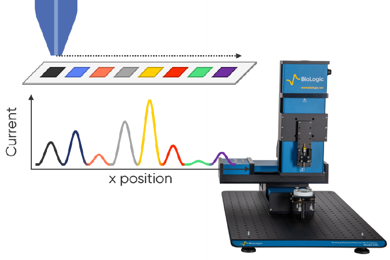 Through scanning probe electrochemistry, a correlation between activity and features can be made. Scanning probe electrochemistry techniques available from BioLogic include: