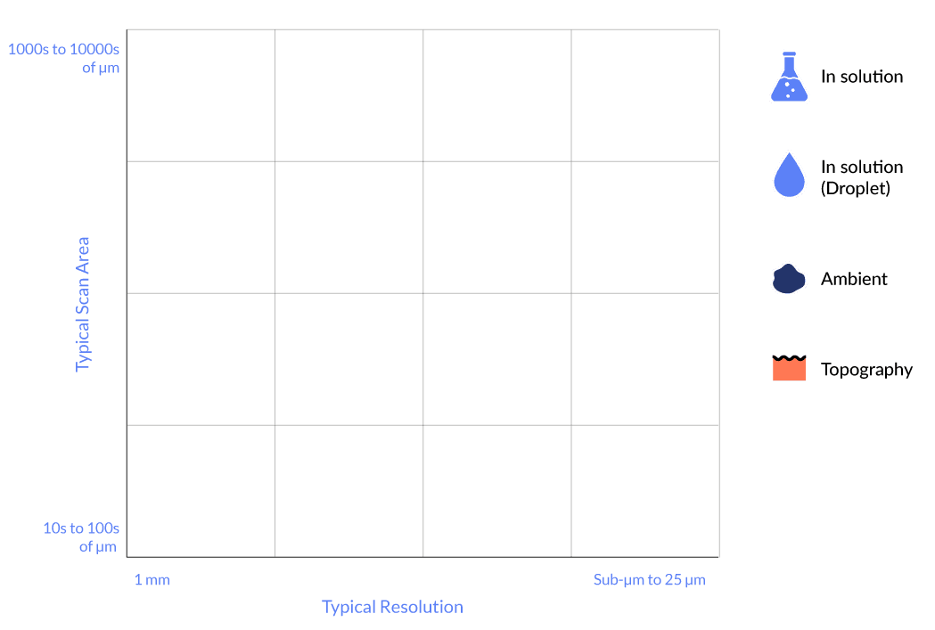 BioLogic offers five distinct scanning probe electrochemistry techniques, some of which include multiple modes, to offer the widest flexibility in the signal measured. This flexibility, however, requires understanding which technique is best suited to your samples. When deciding which technique to use it can be useful to answer the following questions: