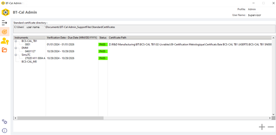The software also provides an easy way to view BCS-CAL metrology certificate and monitor validity. The metrology certificate is valid for two years, after which the BCS-CAL needs to be recalibrated by a metrology company. Instruments used to calibrate the equipment are traceable to NIST Standards.
