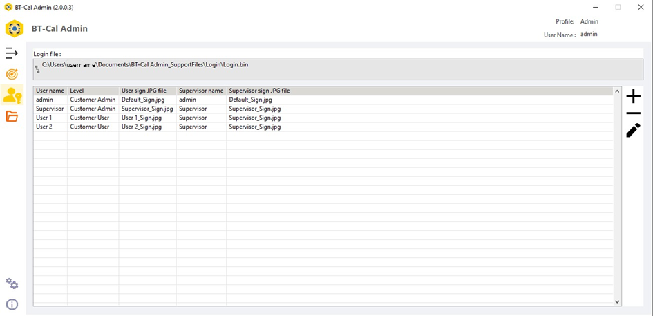 BT-Cal Admin™ is a powerful software tool that enables users to efficiently manage access and report personalization for BCS-CAL instruments. It allows administrators to create and manage user accounts with varying access levels, including assigning names and digital signatures. Additionally, users can customize BCS calibration reports by adding their company logo, name, and other relevant information for a professional and personalized touch.