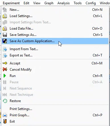 To repeat your experiment, you may have already reloaded a .mps file containing technique settings or a .mpr data file that also loads the related settings. A more efficient option is available through the custom application feature. Once you’ve defined your settings, save them directly as a complete configuration. You can then access this saved configuration in the custom applications section of the technique list for future experiments.